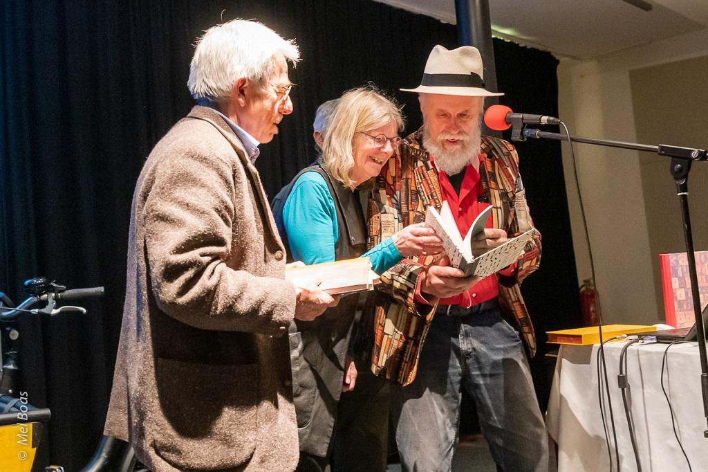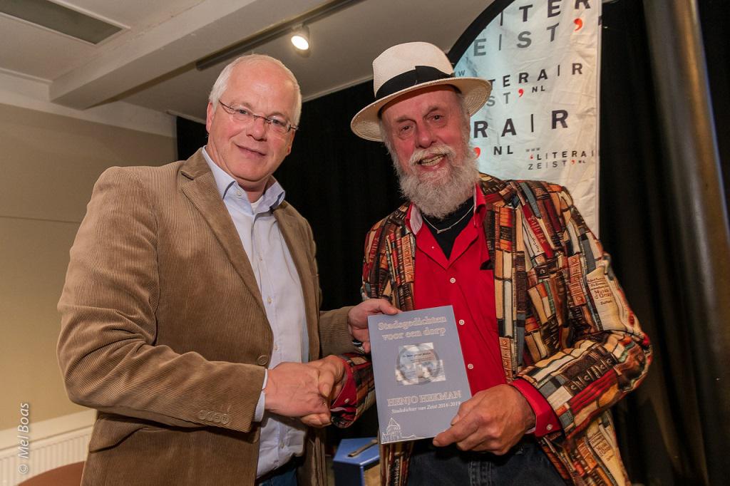 Zaterdag 13 april nam Literair Zeist met een StadsdichtersEstafette in het Torenlaan Theater afscheid van Henjo Hekman als stadsdichter van Zeist. Acht stadsdichters uit Nederland traden op: 's middags in vier verschillende huiskaers en 's avonds in het Torenlaan Theaer, Hnejo presenteerde zijn Poëtische wandeling in gedichten door Zeist en troubadour Leon Lutterman zorgde voor de muikale omlijsting. Diet Groothuis en Mary Heylema werden benoemd als Stadsdichtersduo van Zeist. Wethouder Marcel Fluitman nam de bundel met alle stadsgedichten van Henjo Hekman van de afgelopen drie jaar in ontvangst. Foto's: ©Mel Boas